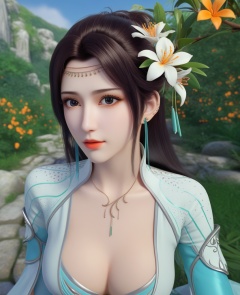 <lora:575-DA-XL-斗破苍穹-云韵-绿服:0.8>(,1girl, ,best quality, ),looking at viewer,  ,ultra detailed background,ultra detailed background,ultra realistic 8k cg,, ,masterpiece, (( , )),, ,      ,  orange blossoms,  (cleavage), (), ,,