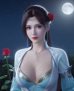 <lora:575-DA-XL-斗破苍穹-云韵-绿服:0.8>(,1girl, ,best quality, ),looking at viewer,masterpiece, (( , )),, realistic,science fiction,mole, ultra realistic 8k cg, moonlight,full moon,  rose,(cleavage), (),