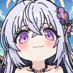 big-head, chibi,portrait,:3,(masterpiece),(best quality),1girl, solo, hair ornament, azusa (blue archive), swimsuit, hair flower, bikini, long hair, flower, necklace, jewelry, frilled bikini, looking at viewer, frills, hair between eyes, blush, open mouth, purple eyes, smile, wings, halo, bow, bead necklace, strapless, beads, ahoge, bare shoulders, strapless bikini, outdoors, purple flower, official alternate costume, knees up, crossed bangs, white hair
