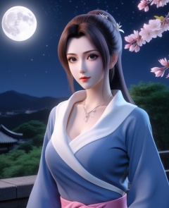 <lora:577-DA-XL-斗破苍穹-云韵-黑服:0.8>(,1girl, ,best quality, ),looking at viewer,  ,ultra detailed background,ultra detailed background,ultra realistic 8k cg,, ,masterpiece, (( , )),, ,   ,   cure blossom, full moon,night,night sky,  (cleavage), (), ,,
