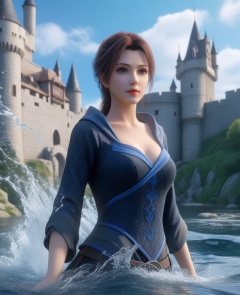 <lora:577-DA-XL-斗破苍穹-云韵-黑服:0.8>(,1girl, ,best quality, ),looking at viewer,ultra detailed background,ultra detailed background,ultra realistic 8k cg, ,masterpiece, (( , )),     ,castle,     (hydrokinesis),  (cleavage), (),