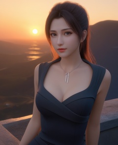 <lora:577-DA-XL-斗破苍穹-云韵-黑服:0.8>(,1girl, ,best quality, ),looking at viewer,masterpiece, (( , )),, realistic,science fiction,mole, ultra realistic 8k cg, , sun,sunset, (cleavage), (),