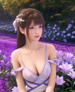 <lora:578-DA-XL-斗破苍穹-小医仙:0.8>(,1girl, ,best quality, ),looking at viewer,  ,ultra detailed 8k cg,ultra detailed background,ultra realistic 8k cg,1girl, solo,(bare shoulders:0.85),(masterpiece, best quality),((oil painting style)),sexy young lady,(beautiful face and eyes),(upper body:1.5),(whole body:1.05),(single person:1.2),surrounded by flowers, (lily), roses, floret, vegetation, white, purple, purplish pink,Impressionism,colorful,(Breast size:1.3),(cleavage),