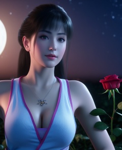<lora:578-DA-XL-斗破苍穹-小医仙:0.8>(,1girl, ,best quality, ),looking at viewer,masterpiece, (( , )),, realistic,science fiction,mole, ultra realistic 8k cg, moonlight,full moon,  rose,(cleavage), (),