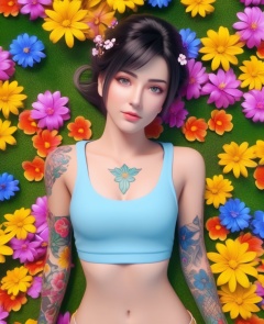 <lora:578-DA-XL-斗破苍穹-小医仙:0.8>(,1girl, ,best quality, ),looking at viewer,  ,,ultra detailed background,ultra detailed background,ultra realistic 8k cg,, ,masterpiece, (( , )),ultra realistic 8k cgSurrounded by strange, movie perspective, advertising style, Colorful background, splash of color A beautiful woman with delicate facial features,tattoo all over body, flower arms,from above,