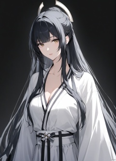 solo,highly detailed,(best quality),((masterpiece)),1girl,black hair,simple_background,long hair,white clothes,hanfu,,black_background,looking_at_viewer,xiaoxiyue
