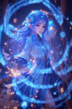 blue-aura,using blue-magic,blue-magic,ancient-costume,1girl,solo,<lora:magic_fighting_blue_with_reg_4_512_15:0.8>,