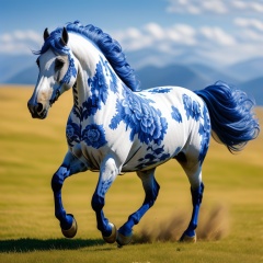 <lora:qinghua-000002:0.9>,HDR,UHD,8K,Highly detailed,best quality,masterpiece,qinghuaci,no humans,horse,outdoors,grass,solo,day,blurry,full body,floral print,animal focus,