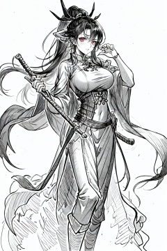 masterpiece,best quality,8K,HDR,RAW,1girl,(standing),large breasts,looking at viewer,<lora:add_detail:0.6>,<lora:GoodHands-beta2:1>,<lora:ENNE 手绘_v10:1>,shouhui,armor,weapon,freehand sketching,