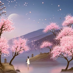 guofeng, 1girl,  scenery, tree, cherry blossoms, outdoors, pink theme, sky <lora:guofeng_v1.0xl:1>, masterpiece, best quality,