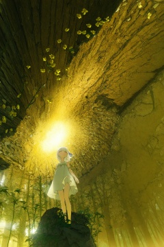 (masterpiece),(best quality),illustration,ultra detailed,hdr,Depth of field,(colorful),loli,yellow theme,the setting sun,Chamomile,Chamomile,cornflower,vines,forest,ruins,lens flare,hdr,Tyndall effect,damp,wet,1girl,bare shoulders,broken glass,broken wall,white hair,white dress,closed mouth,constel lation,flat color,braid,blinking,white robe,float,closed mouth,constel lation,flat color,looking up,standing,medium hair,standing,solo,