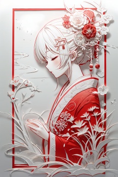 1girl, solo, hair ornament, long sleeves, closed mouth, closed eyes, upper body, flower, white hair, japanese clothes, hair flower, kimono, hair bun, from side, profile,fdjz