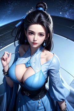 1girl,Xlanlinge,looking from above,(big breasts:1.39),Masterpieces,starry sky background,full moon
