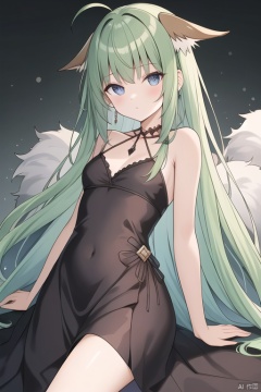 tsrr,bangs,(brown fox ears:0.5),very long hair,dress