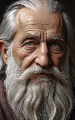 (best quality, 4k, 8k, highres, masterpiece:1.2), ultra-detailed,old man, upper body, realistic, looking at viewer, an old sage with a long beard, eyes that have seen centuries, natural shadow, depth of field, aesthetic, wise and enigmatic