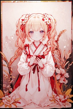 (8k, RAW photo, best quality, masterpiece:1.2),th-hd,1girl,solo,flower,hair ornament, twintails,