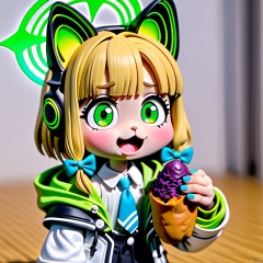 claymation-style,,chibi,drooling,food on face,:3,(masterpiece),(best quality),1girl,midori \(blue archive\),blue archive,aiamu iamu,holding food,holding,hooded jacket,food,sidelocks,:d,collared shirt,blurry,long sleeves,puffy sleeves,headphones,blue bow,hand up,necktie,halo,looking at viewer,jacket,sleeves past wrists,blush,nail polish,blue necktie,animal ear headphones,blurry background,blonde hair,shirt,green eyes,hood down,open clothes,depth of field,hood,smile,white jacket,fake animal ears,bow,puffy long sleeves,open jacket,solo,dress shirt,animal ears,white shirt,blue nails,hair bow,long hair,drawstring,sweet potato,