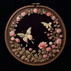 ((HRD, HUD, 8K)),((masterpiece, best quality)), highly detailed,Embroidery, no humans, bug, flower, butterfly, still life, pink flower, white flower, leaf, traditional media, plant, branch,  <lora:20240520-1716211516835:0.9>