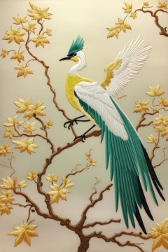 ((HRD, HUD, 8K)),((masterpiece, best quality)), highly detailed,Embroidery, bird, no humans, tree, animal focus, branch, wings, solo, english text, beak, artist name,  <lora:20240520-1716211516835:0.9>