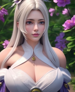 <lora:584-DA-星辰变-白灵:0.8>(,1girl, ,best quality, ),looking at viewer,  ,ultra detailed 8k cg,ultra detailed background,ultra realistic 8k cg,1girl, solo,(bare shoulders:0.85),(masterpiece, best quality),((oil painting style)),sexy young lady,(beautiful face and eyes),(upper body:1.5),(whole body:1.05),(single person:1.2),surrounded by flowers, (lily), roses, floret, vegetation, white, purple, purplish pink,Impressionism,colorful,(Breast size:1.3),(cleavage),