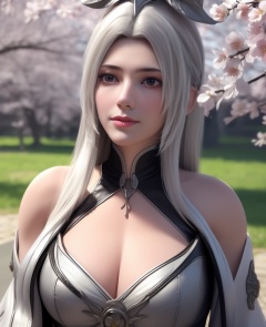 <lora:584-DA-星辰变-白灵:0.8>(,1girl, ,best quality, ),looking at viewer,  ultra detailed background,ultra realistic 8k cg,ultra detailed 8k cg,masterpiece,upper body,  (( , )),, ,science fiction,mole, ultra realistic 8k cg, ,    ,outdoors, sun,sunlight, cherry blossoms,      (cleavage), (),