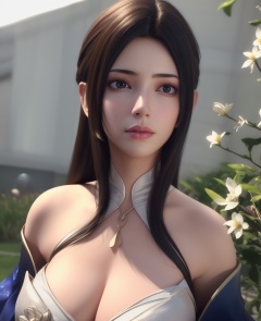 <lora:584-DA-星辰变-白灵:0.8>(,1girl, ,best quality, ),looking at viewer,  ,,ultra detailed background,ultra detailed background,ultra realistic 8k cg, ,masterpiece, (( , )),, realistic,science fiction,mole, ultra realistic 8k cg, ,     ,crescent moon, jasmine \(flower\),     (cleavage), (),