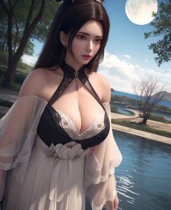 <lora:584-DA-星辰变-白灵:0.8>(,1girl, ,best quality, ),looking at viewer,  ,ultra detailed background,ultra detailed background,ultra realistic 8k cg, ,masterpiece, (( , )),, ,fiction,mole,,      ,(cleavage), (),  ,see-through, lace, (((, solo, moon, , bare_tree, )))(cleavage),