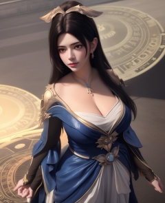 <lora:584-DA-星辰变-白灵:0.8>(,1girl, ,best quality, ),looking at viewer,ultra detailed background,ultra detailed background,ultra realistic 8k cg, ,masterpiece, (( , )),   (magic, magic circle, ),  (cleavage), (),