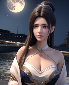 <lora:584-DA-星辰变-白灵:0.8>(,1girl, ,best quality, ),looking at viewer,masterpiece, (( , )),, realistic,science fiction,mole, ultra realistic 8k cg, full moon, (cleavage), (),