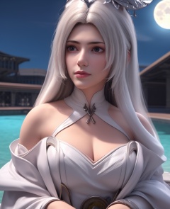 <lora:584-DA-星辰变-白灵:0.8>(,1girl, ,best quality, ),looking at viewer,masterpiece, (( , )),, realistic,science fiction,mole, ultra realistic 8k cg, full moon,  rose,(cleavage), (),
