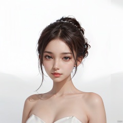 (High quality, High resolution, High quality, Fine details), 1girl, black hair, white background, face focus, ,Peachmilky2,majastrojek,esterexposito,qnl woman,sanguo style,pljx woman, Susana Almeida, Taylor Marie Hill