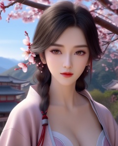 <lora:585-DA-XL-眷思量-璎陌:0.8>(,1girl, ,best quality, ),looking at viewer,  ,ultra detailed background,ultra detailed background,ultra realistic 8k cg,, ,masterpiece, (( , )),, ,   plum blossoms,    ,,  (cleavage), (), ,,