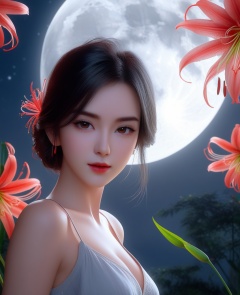 <lora:585-DA-XL-眷思量-璎陌:0.8>(,1girl, ,best quality, ),looking at viewer,  ,,ultra detailed background,ultra detailed background,ultra realistic 8k cg, ,masterpiece, spider lily,full moon, (cleavage), (),