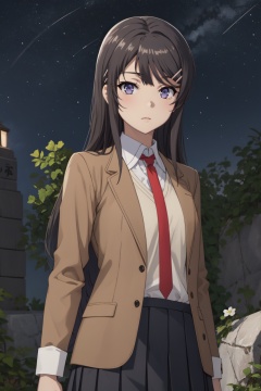 <lora:Mai-000010:0.8>,Mai CYQL,1girl,looking at viewer,solo,black_hair,long_hair,hairclip,hair_ornament,purple eyes,school_uniform,brown_jacket,shirt,white_shirt,necktie,skirt,pleated_skirt,pantyhose,black_pantyhose,loafers,brown_footwear,;d,portrait,Rocks, Desert, Formations, Sandstone, Erosion, Colors, Arid, Silence,(Ancient oaks, Moss-covered branches, Sun-dappled forest floor, Enchanted atmosphere, Forest spirits, Timeless beauty:0.5),beautiful detailed sky,beautiful detailed glow,posing in front of a colorful and dynamic background,masterpiece,best quality,beautiful and aesthetic,contrapposto,female focus,wallpaper,