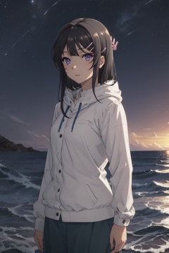 <lora:Mai-000010:0.8>,Mai CYQL,1girl,looking at viewer,solo,black_hair,long_hair,hairclip,hair_ornament,purple eyes,Hooded Aran sweater with joggers and chunky sneakers,sleepy,panorama,Coral, Fish, Seaweed, Sunlight, Clear water, Diverse marine life, Colorful, Serenity,(Sea oats, Beach grass, Sand dunes, Sea breeze, Soft twilight, Seagulls:0.5),beautiful detailed sky,beautiful detailed glow,posing in front of a colorful and dynamic background,masterpiece,best quality,beautiful and aesthetic,contrapposto,female focus,wallpaper,