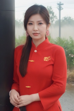 1girl, solo, looking at viewer, black hair, hair ornament, long sleeves, brown eyes, jewelry, upper body, flower, earrings, hair flower, wide sleeves, lips, chinese clothes, realistic, red lips, korean clothes,Cyberpunk