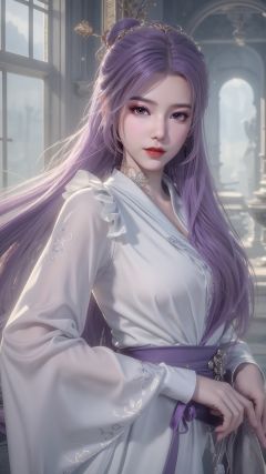 <lora:YX_20240409134143-000008:0.5>,YX,1girl,solo,hair ornament,purple hair,jewelry,purple eyes,hair bun,looking at viewer,closed mouth,portrait,realistic,nose,bangs,parted bangs,bare_legs,snow white skin,1girl,solo,purple hair,long hair,hair ornament,dress,upper body,purple eyes,long sleeves,hair bun,looking at viewer,cloud,chinese clothes,sky,closed mouth,own hands together,single hair bun,cloudy sky,white dress,sexy,seduce,naked,(fullbody,Long distance shot),cinematic lighting,glowing point,<lora:HDR:0.5>,<lora:MHB:0.3>,GONGDIAN,<lora:GONGDIAN_20240315224227:0.7>,inside the palace,window,couch,carpet,