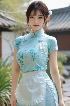 best quality, masterpiece,Depth of field,kind smile,looking_at_viewer,Dynamic pose,RAW photo,1girl,Xcheongsam,(big breasts:1.39),ping dress,