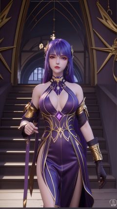 <lora:SCE_20240414154117-000009:0.75>,SCE,1girl,solo,purple eyes,purple hair,raiden shogun,(purple eyes:1.2),looking at viewer,long hair,(hair ornament:1.3),bangs,jewelry,realistic,earrings,closed mouth,nose,large breasts,cleavage,nude,bare_legs,snow white skin,1girl,solo,stairs,long hair,dress,gloves,blue hair,single glove,blue dress,halter dress,sword,looking at viewer,jewelry,bangs,halterneck,breasts,weapon,parted lips,earrings,standing,bare shoulders,black gloves,indoors,hair ornament,medium breasts,sleeveless,border,sleeveless dress,lips,detached sleeves,cowboy shot,criss-cross halter,single gauntlet,elbow gloves,holding,stained glass,blue eyes,purple eyes,black border,Large breast,Giant breasts,sexy,seduce,(naked:1.1),(fullbody,Long distance shot),cinematic lighting,glowing point,<lora:HDR:0.5>,<lora:梦幻白1:0.3>,