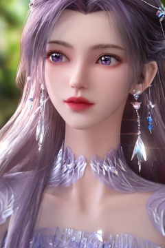best quality,masterpiece,Xlimuwan,1girl,solo,very long hair,looking at viewer,jewelry,closed mouth,purple eyes,upper body,purple hair,earrings,blurry,blurry background,sunlight,red lips,(big breasts:1.39),