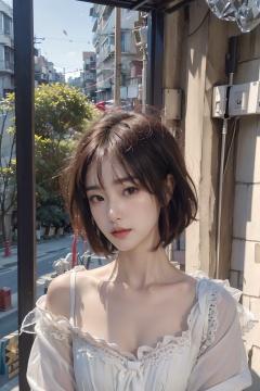 1girl,solo,long hair,realistic,lips,parted lips,upper body,blurry background,floating petals,jitome,cute,Street background:1.5,short hair,masterpiece,high quality,best quality),(colorful:0.75),(delicate eyes and face),volumatic light,ray tracing,extremely detailed CG unity 8k wallpaper,solo, indoors, palace, lights, window, decorations,(ahoge:1.3),best quality,official art,(((light from the sky))),floating hair,light shines on hair,whultra-detailed,(((extremely detailed cg 8k wallpaper))),(crystalstexture skin:1.4),(extremely delicate and beautiful),(white skin),looking_at_viewer,kinghere fensejiaren,,realistic, <lora:20240212-1707682573619:0.75> <lora:Body_shaping:0.35>