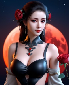 <lora:588-DA-XL-梦塔·雪谜城-白亦君:0.8>(,1girl, ,best quality, ),looking at viewer,  ,,ultra detailed background,ultra detailed background,ultra realistic 8k cg,, ,masterpiece, (( , )),, ,science fiction,mole, ,    ,red moon, black rose,     (cleavage), (),