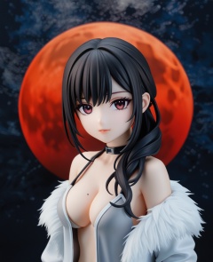 (,1girl, ,best quality, ),looking at viewer,  ,,ultra detailed background,ultra detailed background,ultra realistic 8k cg,, ,masterpiece, (( , )),, ,science fiction,mole, ,    ,red moon, black rose,     (cleavage), (),