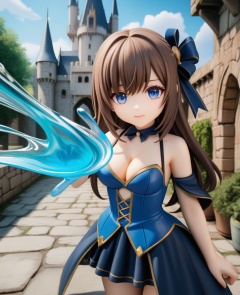 (,1girl, ,best quality, ),looking at viewer,ultra detailed background,ultra detailed background,ultra realistic 8k cg, ,masterpiece, (( , )),     ,castle,     (hydrokinesis),  (cleavage), (),