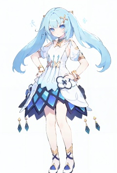 8k,best quality,masterpiece,(ultra-detailed:1.1),(high detailed skin),(full body:1.4),white background,standing,looking at viewer,(solo),hand on hip,<lora:fls-v100:0.8:lbw=OUTALL>,fls,def clothe,1girl,dress,jewelry,bracelet,twintails,long hair,hair ornament,bangs,(white background, simple background:1.6),(beautiful_face),((intricate_detail)),clear face,((finely_detailed)),fine_fabric_emphasis,((glossy)),full_shot,