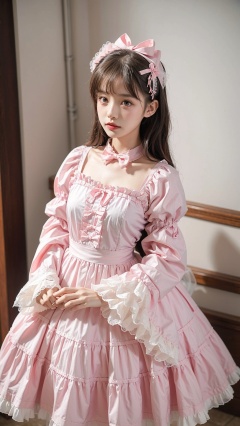 1girl, lolita fashion, pink dress,wide sleeves ,, <lora:YG公主洛丽塔1:0.75>,