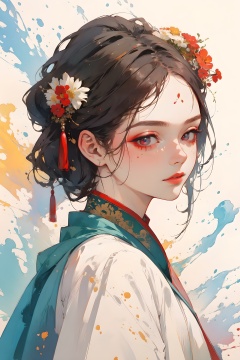 one girl,masterpiece:1,best quality,pigment:1.5, Facial detail,Exquisite makeup, Color background,(colorful:0.8),ancient ,ancient costume,diffusion,China, <lora:chinese-art:0.25>