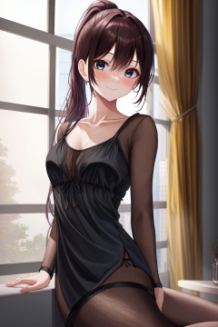 (((highres:1.2))),(((absurdres:1.3))),1girl,solo,smile,****,fair_skin,black eyes,high ponytail,long hair,medium breasts,(detailed light),medium_shot,front view,depth of field,looking_at_viewer,<lora:细节加强-墨即-V1:1>,loungewear,