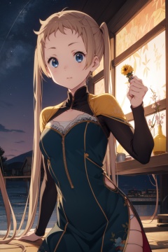 <lora:Sanae-000014:0.8>,Sanae CYQL,1girl,looking at viewer,solo,blonde hair,very long hair,long hair,twintails,brown hair,blue eyes,Velvet bodycon dress with slit,:d,portrait,Mangroves, Swamp, Mud, Roots, Tidal channels, Crabs, Mosquitoes, Biodiversity,(Desert wildflowers, Arid landscape, Desert bloom, Colorful desert, Springtime explosion, Desert oasis:0.5),beautiful detailed sky,beautiful detailed glow,posing in front of a colorful and dynamic background,masterpiece,best quality,beautiful and aesthetic,contrapposto,female focus,wallpaper,