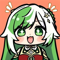 ((HRD, HUD, 8K)),((masterpiece, best quality)), highly detailed, soft light,EmojiPack, nahida (genshin impact), 1girl, green eyes, cross-shaped pupils, open mouth, solo, hair ornament, symbol-shaped pupils, multicolored hair, bangs, white hair, green hair, meme, pointy ears, side ponytail, teeth, long hair, braid, looking at viewer, simple background, <lora:20240527-1716802627504:0.9>